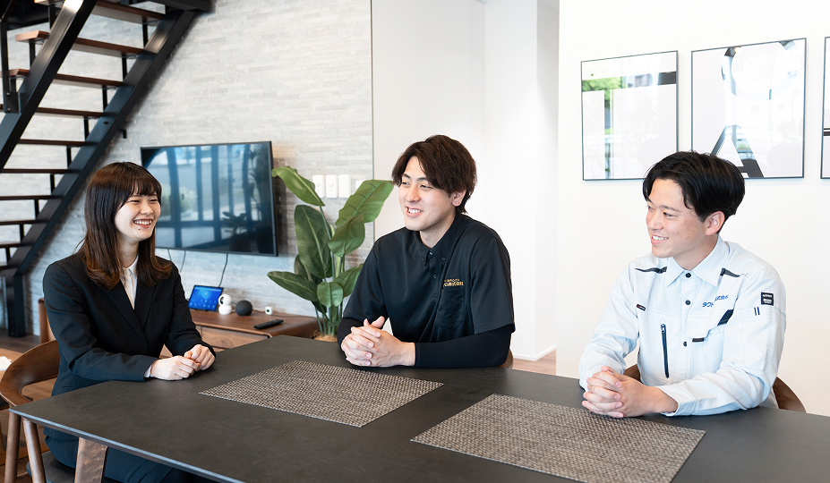 タクトホームグループで建築の分野で働く3人の若手社員が、座談会に集まってくれました。なぜタクトホームグループを選んだか?入社前と入社後に感じたギャップは?今後チャレンジしたいことは?など、ありのままに胸中を語ってくれました。