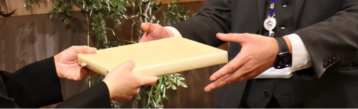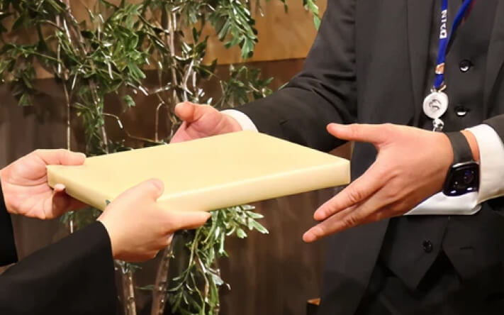昇格者には、「辞令交付式」で正式に辞令が手渡されます。