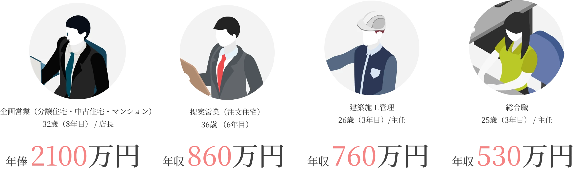 前職の給与などを考慮して相談となりますが、各職種の一例をご紹介します。
