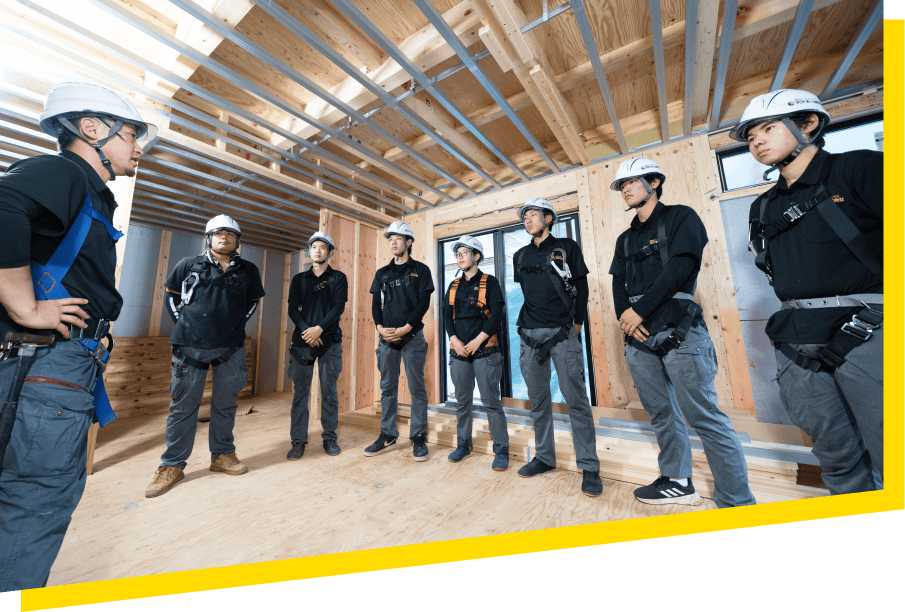 そんな誇りを胸に、年間5,000棟の施工実績を支える日々の業務と技術向上に向き合っています。住宅性能表示制度7項目最高等級の品質基準を全棟でクリアする丁寧さを大切にし、手を動かす人の“心”が家に表れると信じ、飯田グループのスケールメリットを活かしながらも、一棟一棟への想いを込めて取り組んでいます。