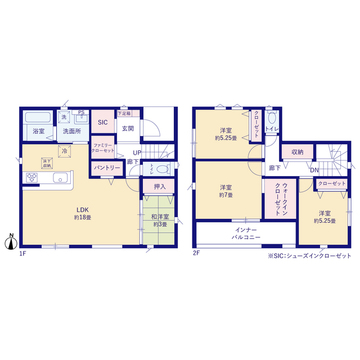 大容量WICや2階ホール収納など、収納スペースが豊富です