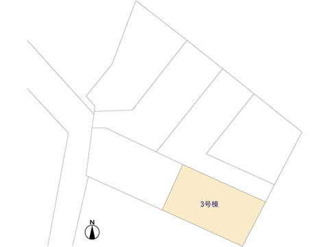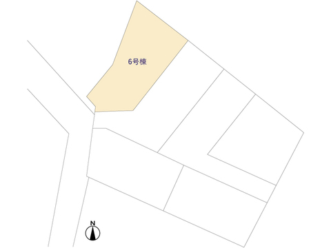 - 1号棟 南東:5m 2号棟 南東:5m 3号棟 南東:5m 4号棟 西:6m 5号棟 西:6m 6号棟 南西:6m