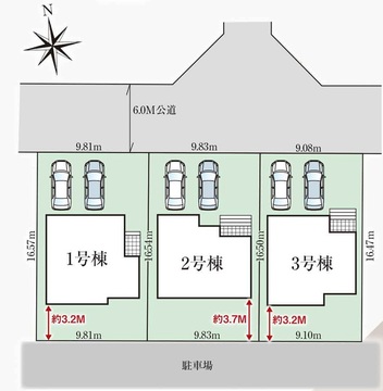 - 1号棟 北:6m 2号棟 北:6m 3号棟 北:6m