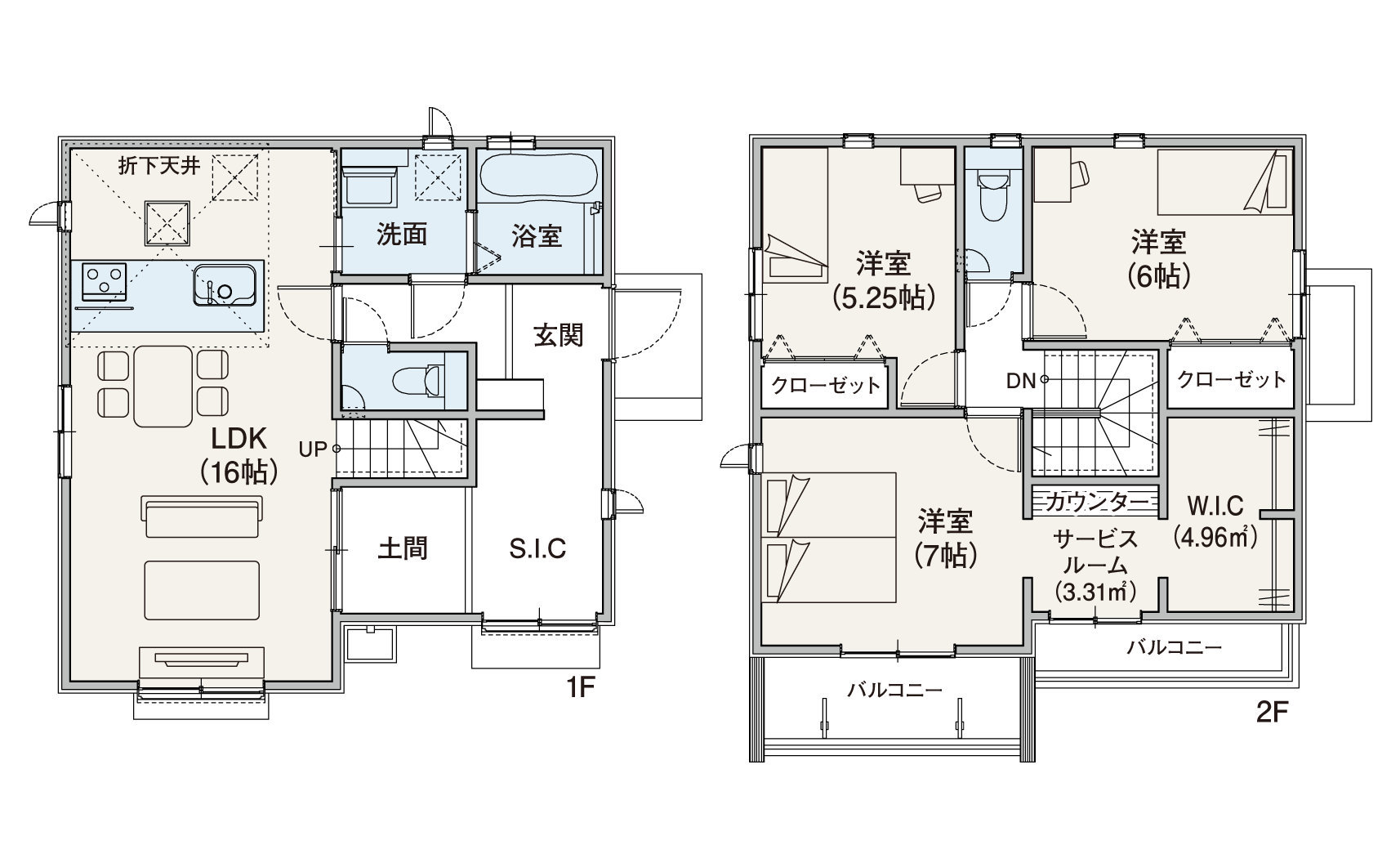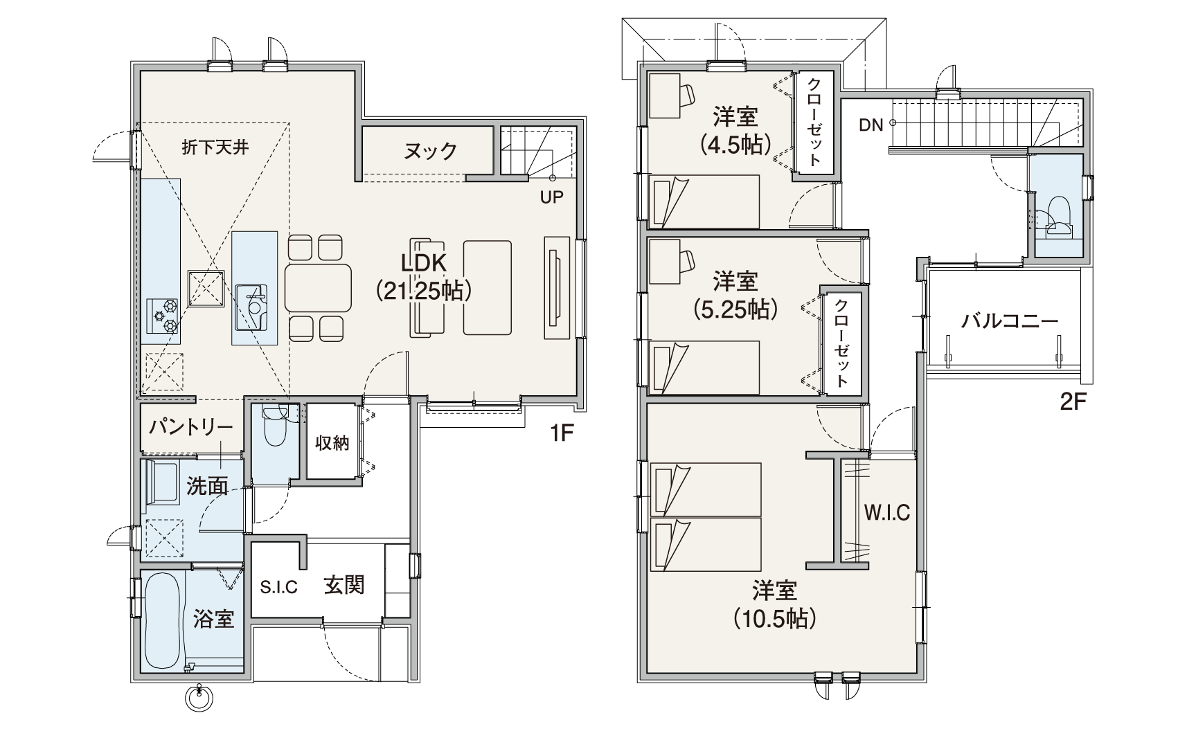 大容量パントリーやウォークインクローゼットなど、収納が充実したプラン。