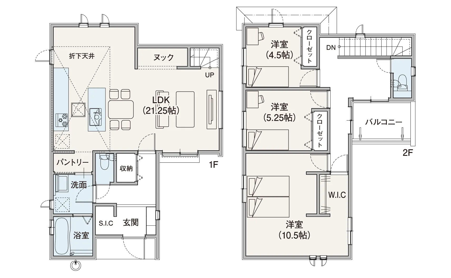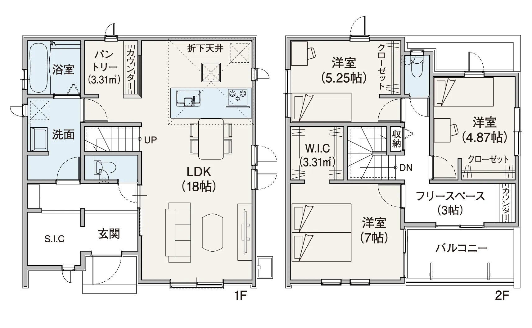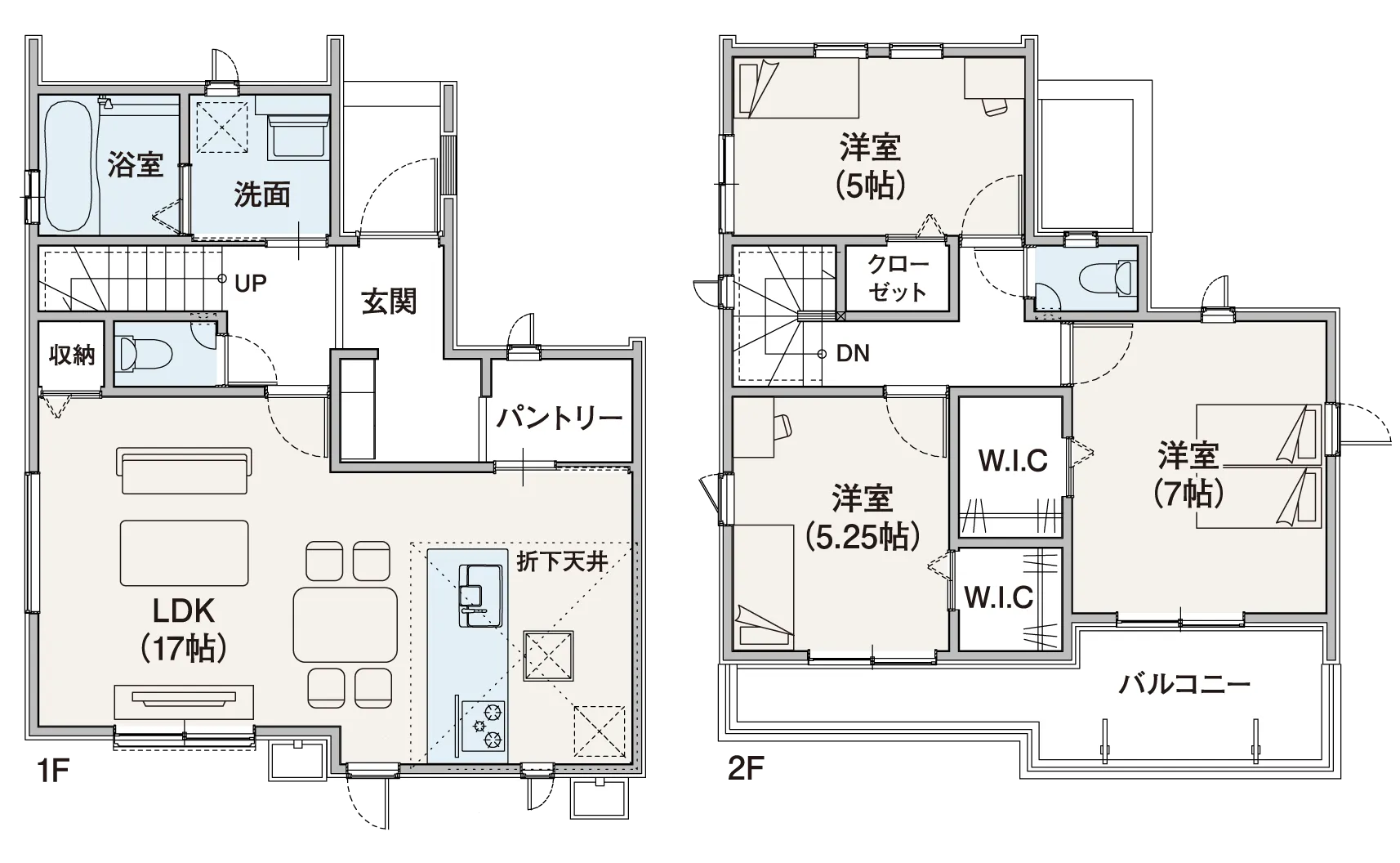 大容量パントリーやウォークインクローゼットなど、収納が充実したプラン。