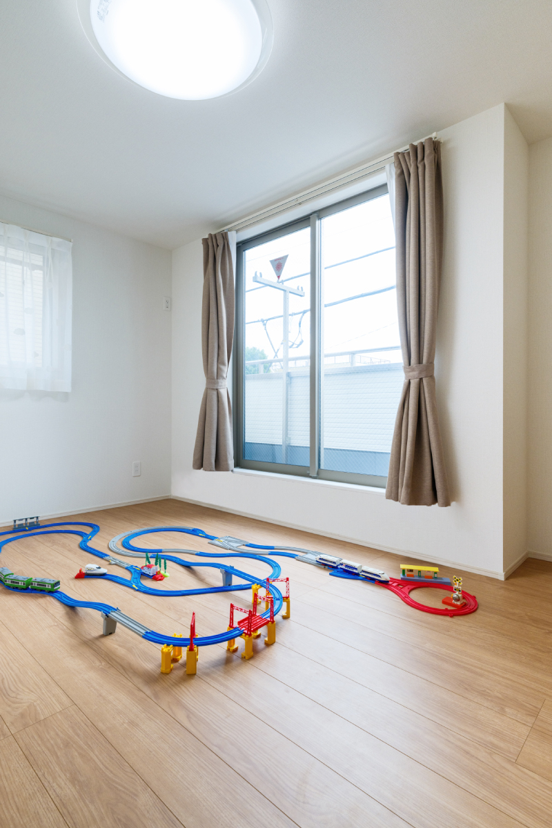 広々とした窓から明るい自然光が差し込み、子供たちが遊び心を膨らませる空間です。