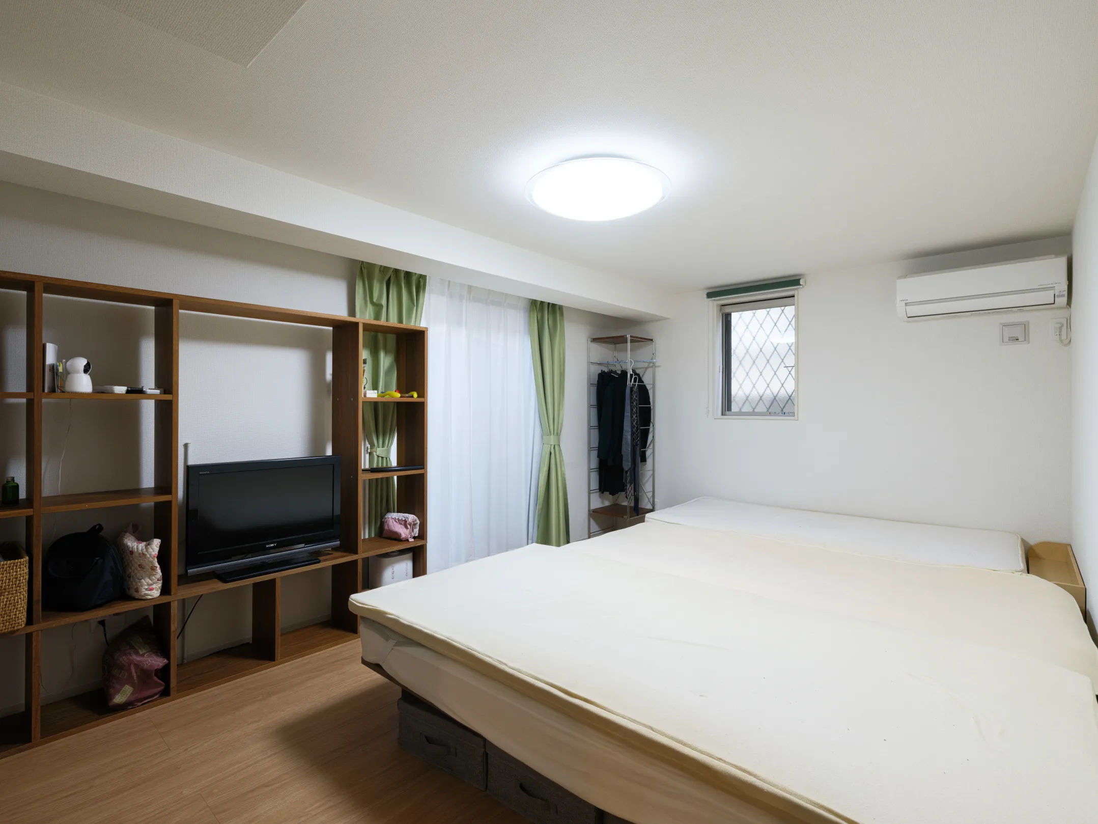 お子様が小さいうちは一緒に寝ることを想定し、広めに確保された9.6帖の寝室。さらに、緊急時の二方向避難を可能にするため、玄関とは反対側に掃き出し窓を設ける工夫が施されています。