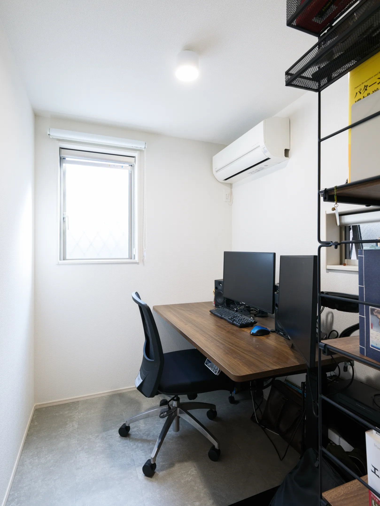 Y様の書斎は、2.7帖のコンパクトなスペースながら、効率的に設計されています。リビングとは異なるフロアに配置されているため、在宅勤務をする際も、以前の住まいより音を気にすることなく快適に利用できる環境が整っています。