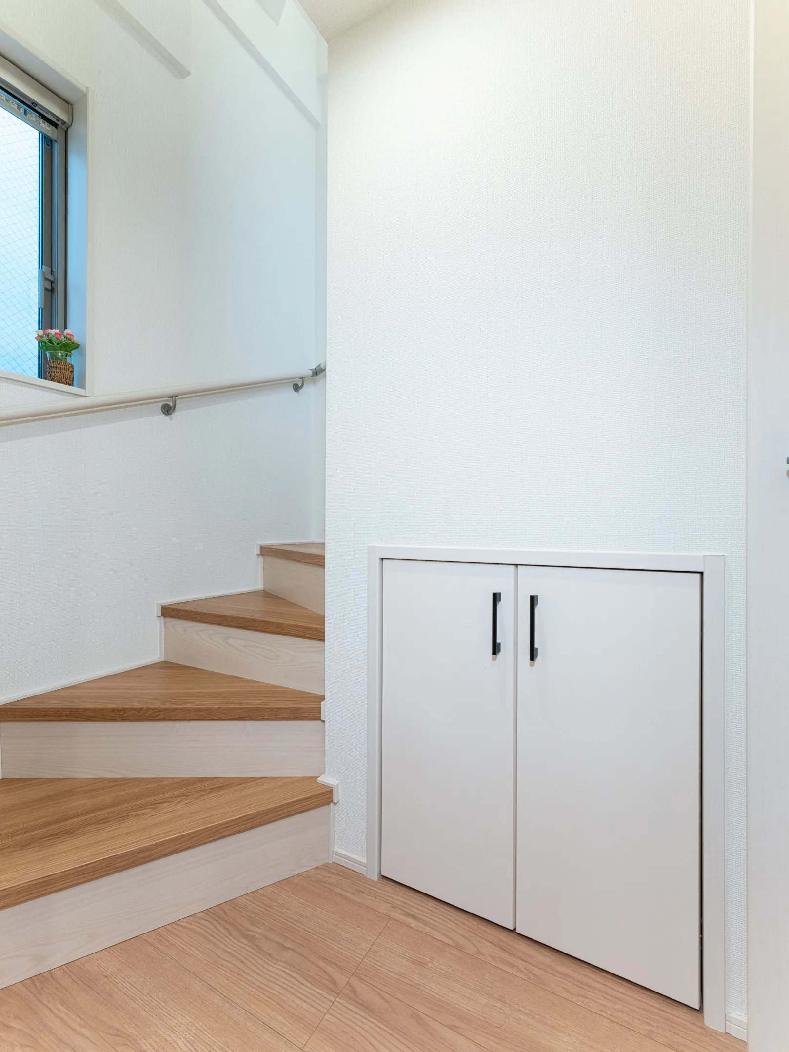 階段下のスペースを無駄にせず、収納として活用しています。買い置きのティッシュやかさばる冬物の寝具などをすっきり収納できる設計となっており、便利に使える工夫が取り入れられています。